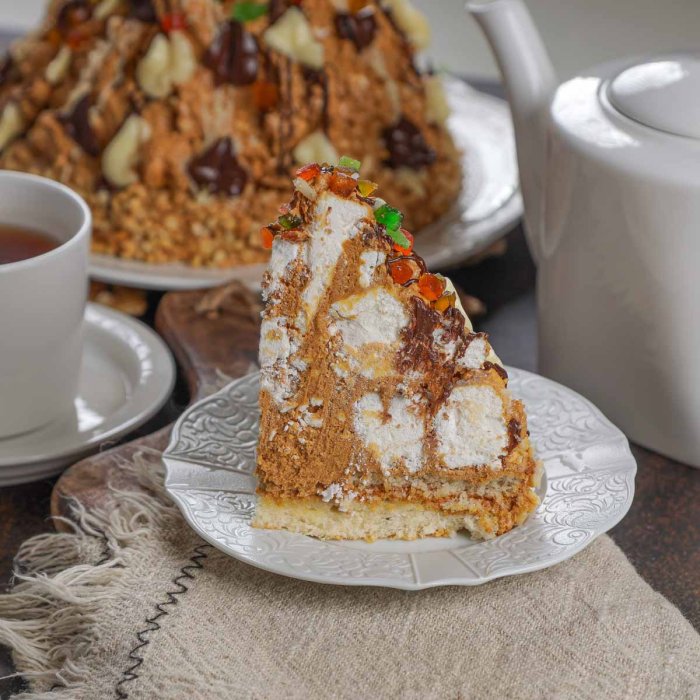 Нежный бисквит, хрустящие кусочки безе и крем