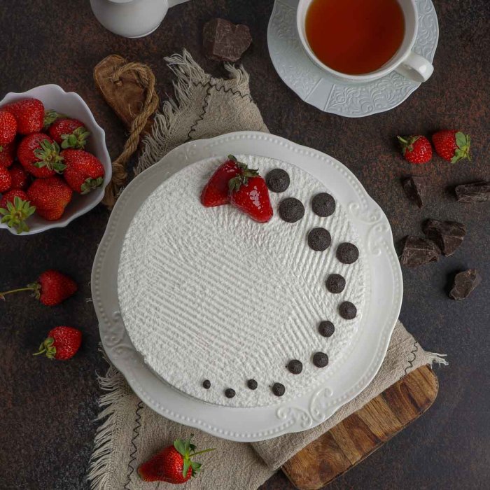 Молоко сгущенное цельное, мука пшеничная в/с, яйцо куриное, сливки натуральные, сахарная пудра, сахарная пудра не тающая, ягода клубника свежая, глазурь шоколадная темная, глазурь нейтральная