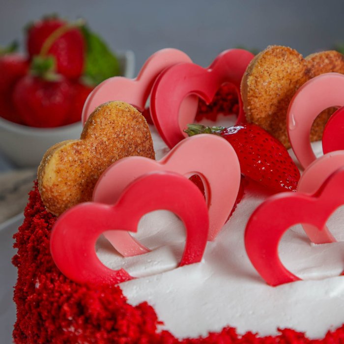 Мука пшеничная в/с, клубника с/м, клубника свежая, йогурт натуральный, сливки растительные, сахар, яйцо куриное, крахмал картофельный, маргарин, корица, какао-порошок, желатин, шоколад белый, глазурь нейтральная, коньяк, загуститель, краситель пищевой
