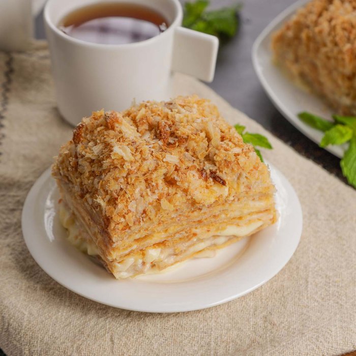 Мука пшеничная в/с, масло сливочное, яйцо куриное, молоко цельное сгущенное, сахар, смесь кремико, маргарин для слоеного теста, ванилин, лимонная кислота, водка, соль