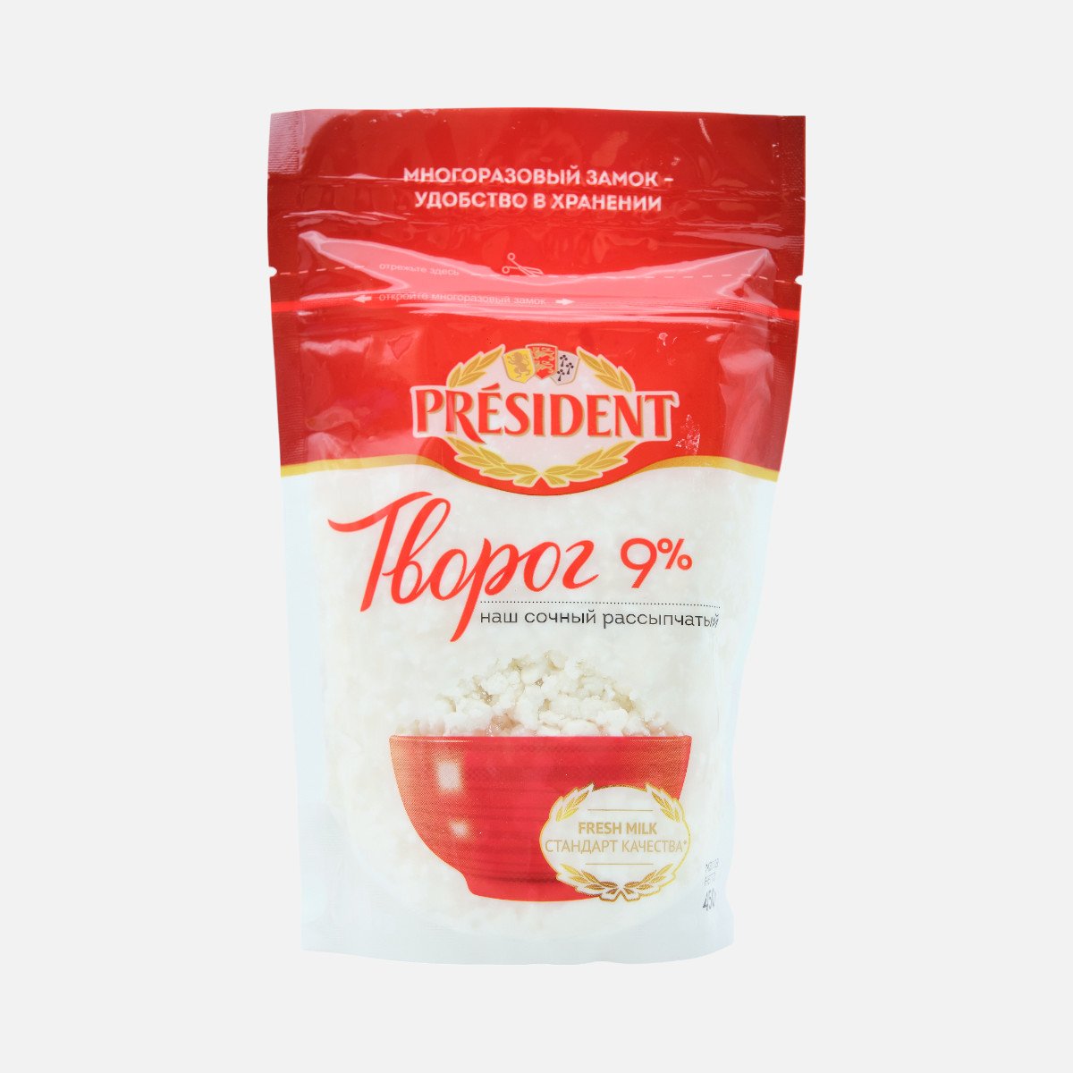 Творог Президент рассыпчатый 9% дой/пак 450г