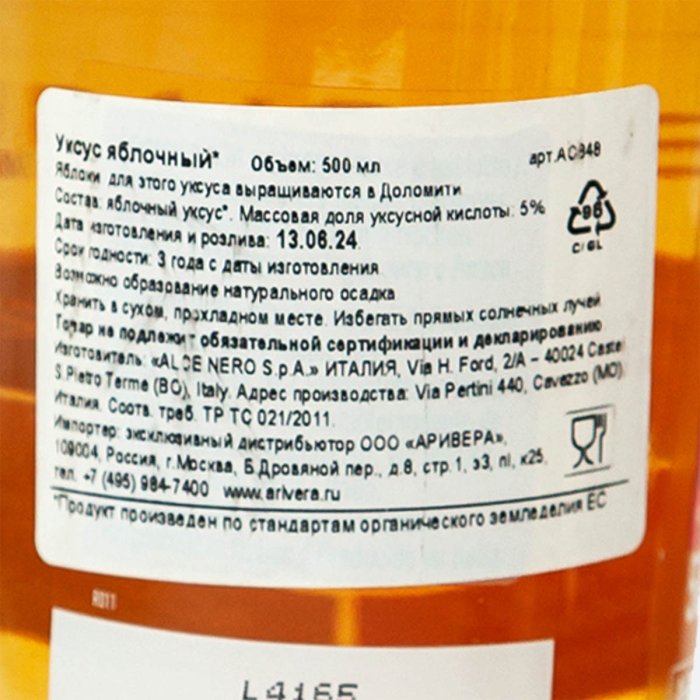 Уксус Альче Неро Яблочный ст/б 500мл