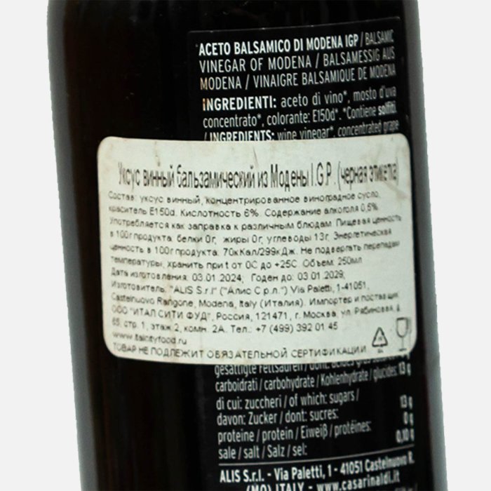 Уксус Каса Ринальди бальзамический винный черная этикетка 250мл