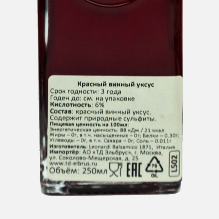Уксус Леонарди Ламбруско винный красный 250мл