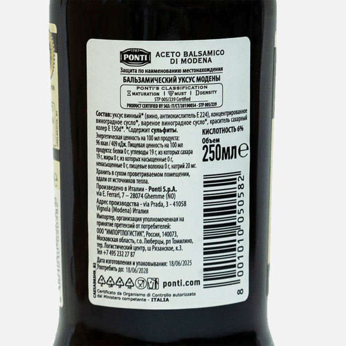Уксус Понти бальзамический Модены качество Д+ ст/б/спрей 250мл
