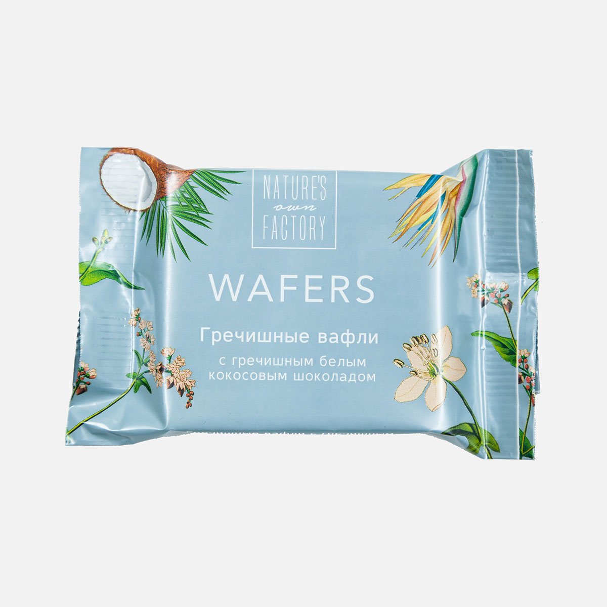 Вафли Нэйчес аун Фэктери Гречишные с белым кокосовым шоколадом 20г