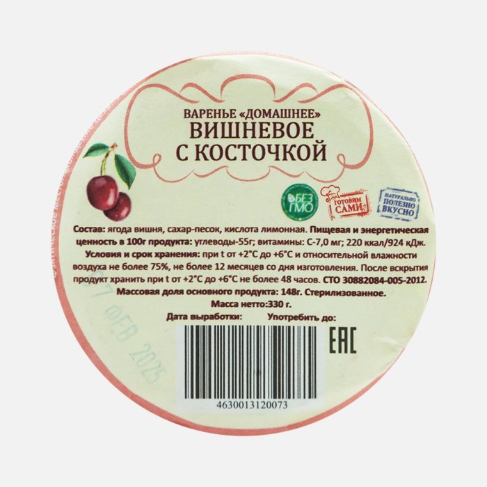 Варенье Домашнее вишневое с косточкой ст/б 330г