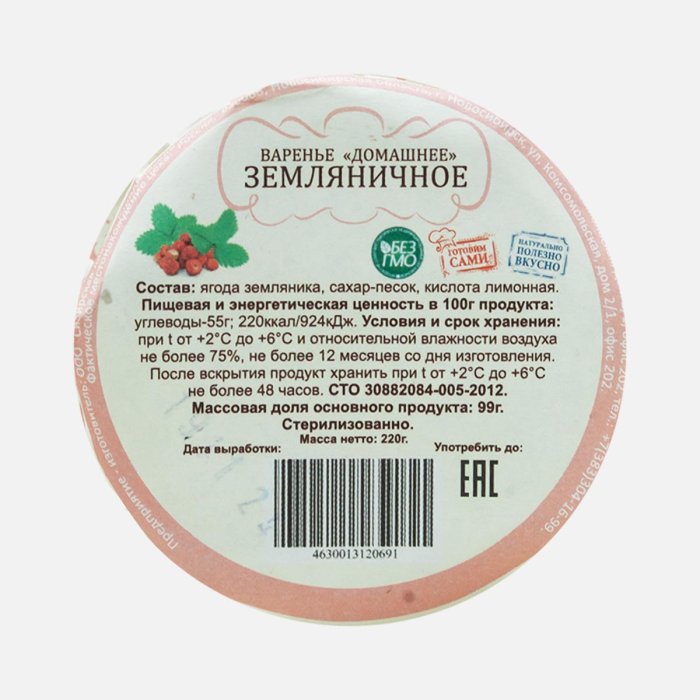 Варенье Домашнее земляничное ст/б 220г