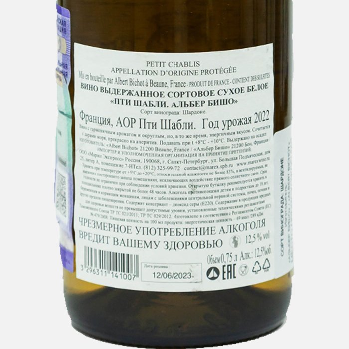 Вино Альбер Бишо Пти Шабли выдер сорт бел сух 7.5-12.5% ст/б 0,75л