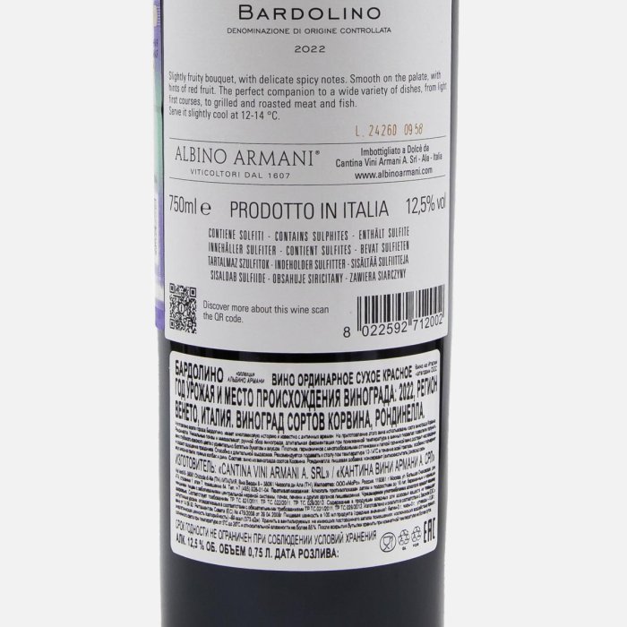 Вино Альбино Армани Бардолино кр сух 8-12.5% ст/б 0,75л
