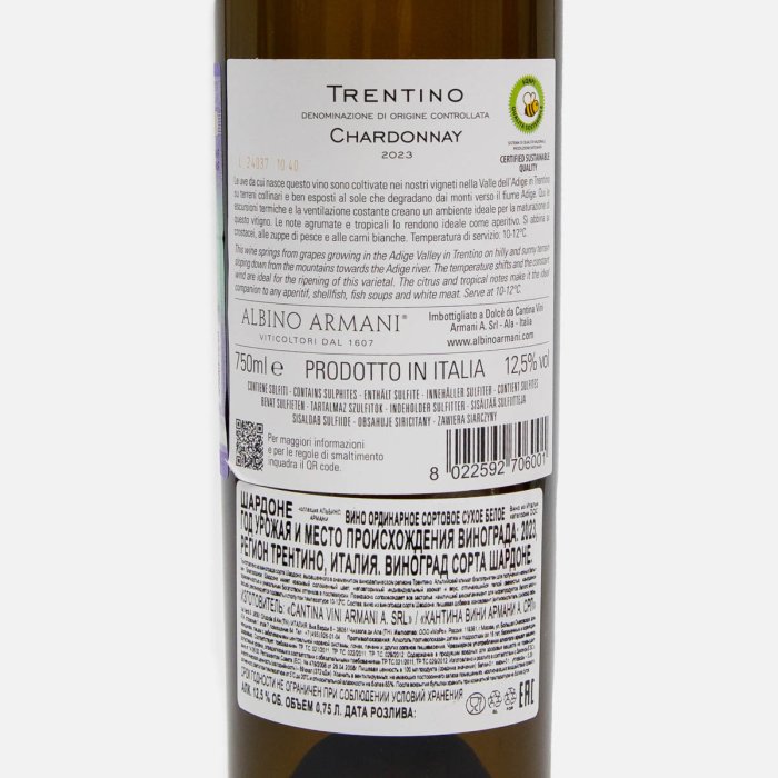 Вино Альбино АрманиШардоне бел сух 8-13% ст/б 0,75л