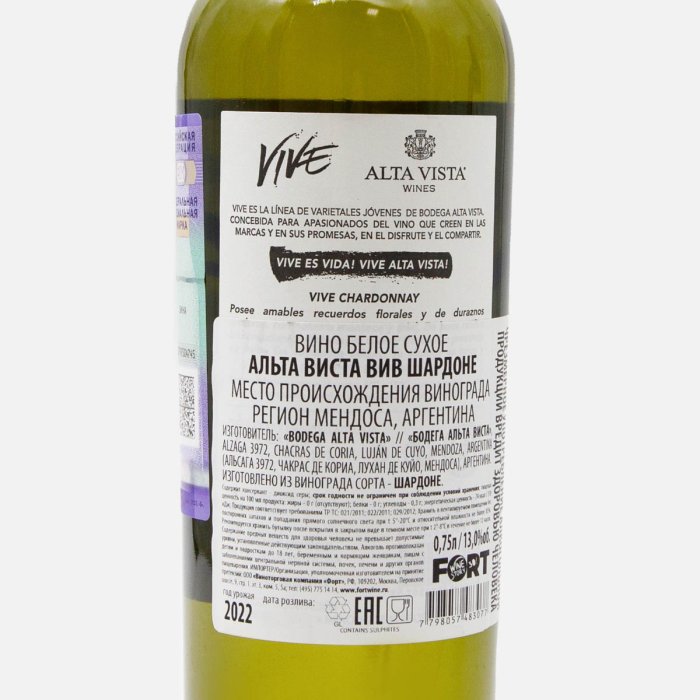 Вино Альта Виста Вив Шардоне бел сух 13-13.5% ст/б 0,75л