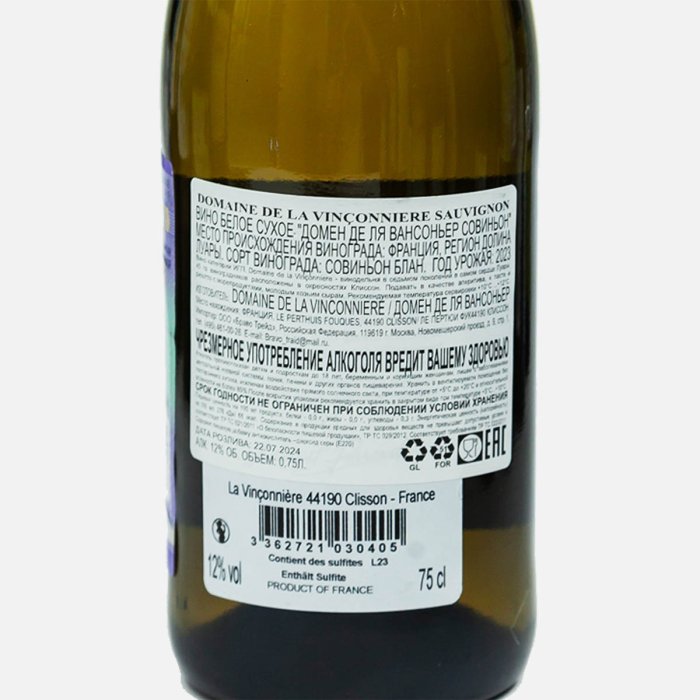 Вино Домен де ля Вансоньер Совиньон бел сух 11.5-12% ст/б