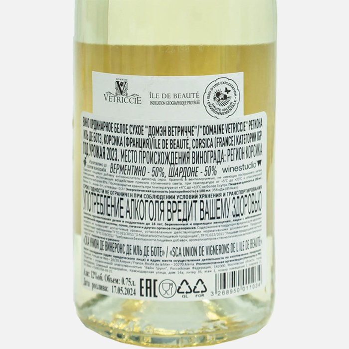 Вино Домэн Ветричче ИГП орд бел сух 7.5-12% ст/б 0,75л