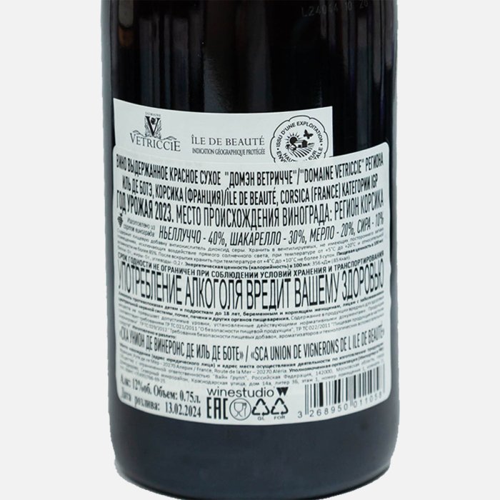 Вино Домэн Ветричче ИГП выд кр сух 7.5-12% ст/б 0,75л