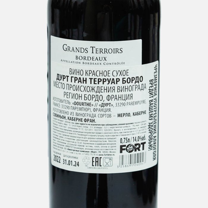 Вино Дурт Гран Терруар Бордо кр сух 14% ст/б 0,75л
