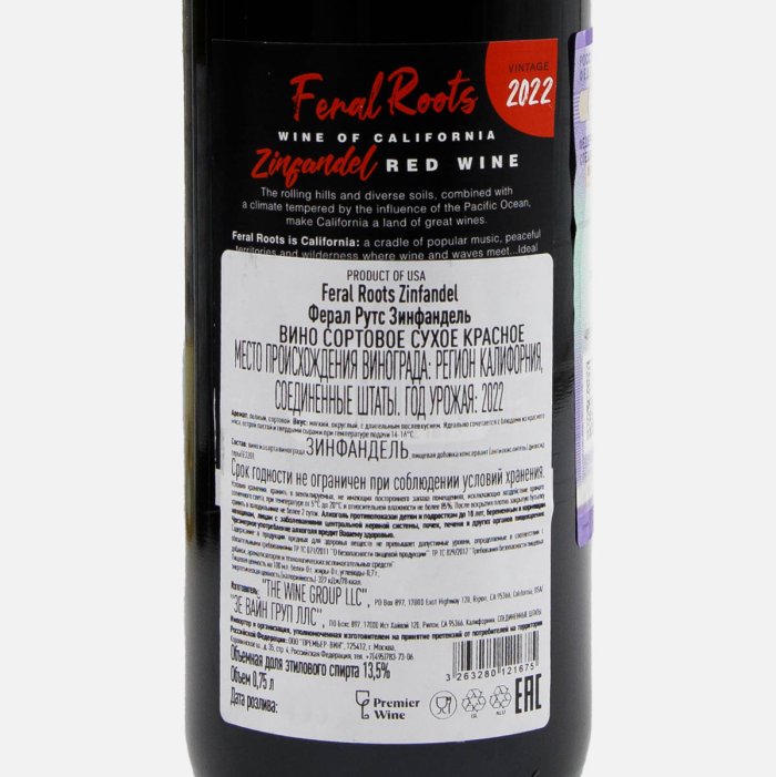 Вино Ферал Рутс Зинфандель сорт кр сух 13.5% ст/б 0,75л