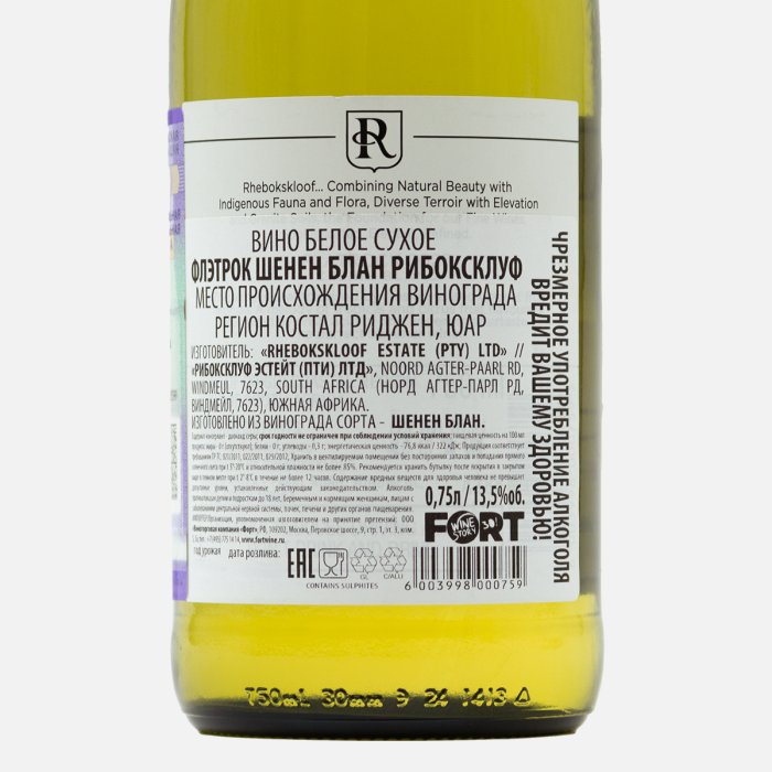 Вино Флэтрок Шенен Блан Рибоксклуф бел сух 13-13.5% ст/б 0,75л