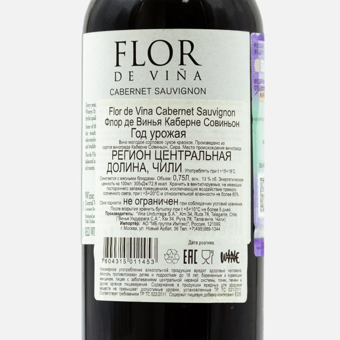 Вино Флор де Винья Каберне Совиньон мол сорт кр сух 7.5-13% ст/б 0,75л