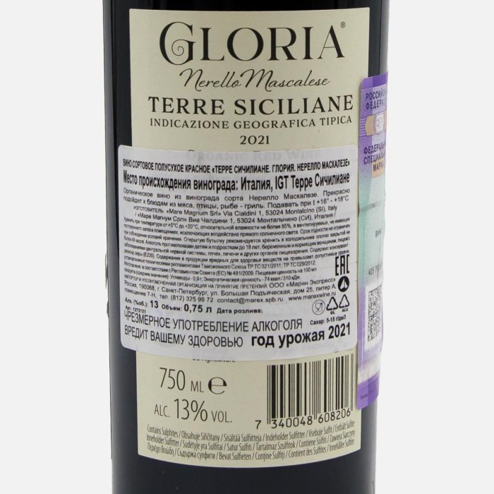 Вино Глория Нерелло Маскалезе Терре Сичилиане сорт кр п/сух7.5-13%0,75л
