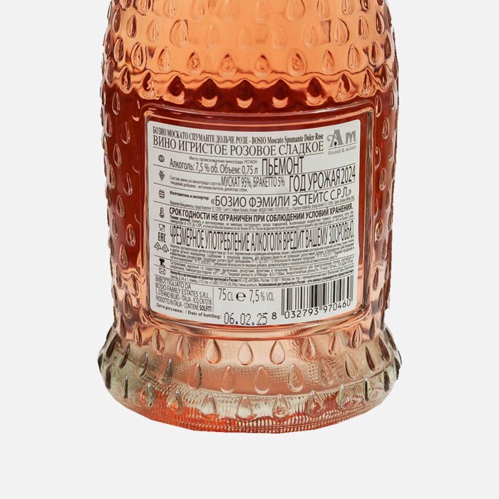 Вино игристое Бозио МоскатоСпуманте Дольче Розе роз сл7-7.5% ст/б 0,75л