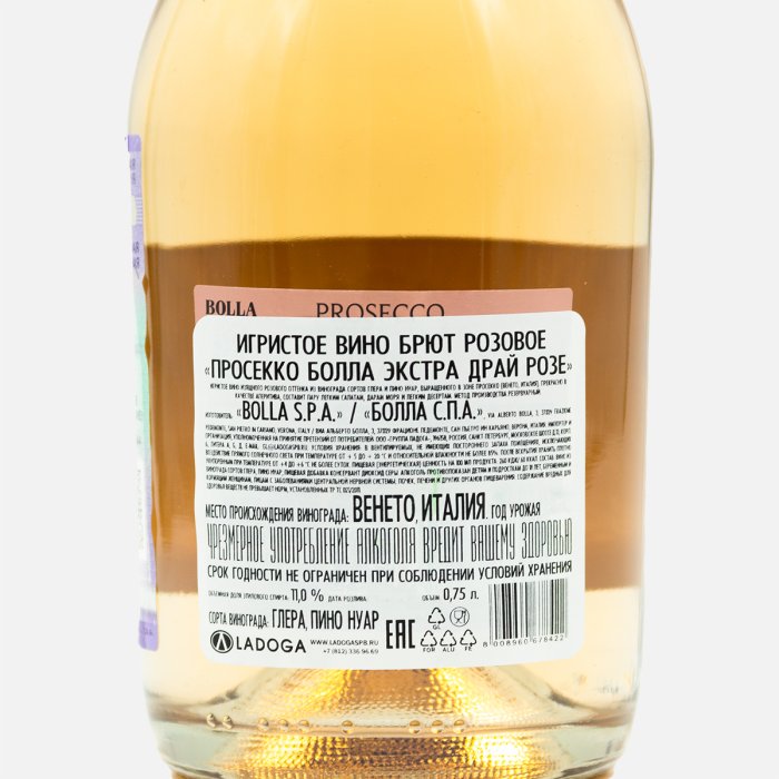 Вино игристое Просекко Болла Экстра Драй Розе роз брют 11% ст/б 0,75л