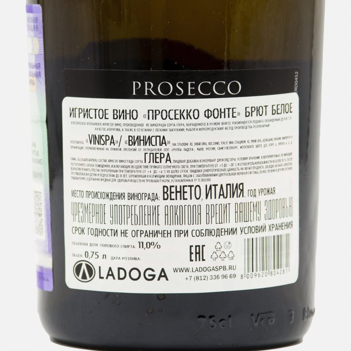 Вино игристое Просекко Фонте ДОК брют белое 11% ст/б 0,75л