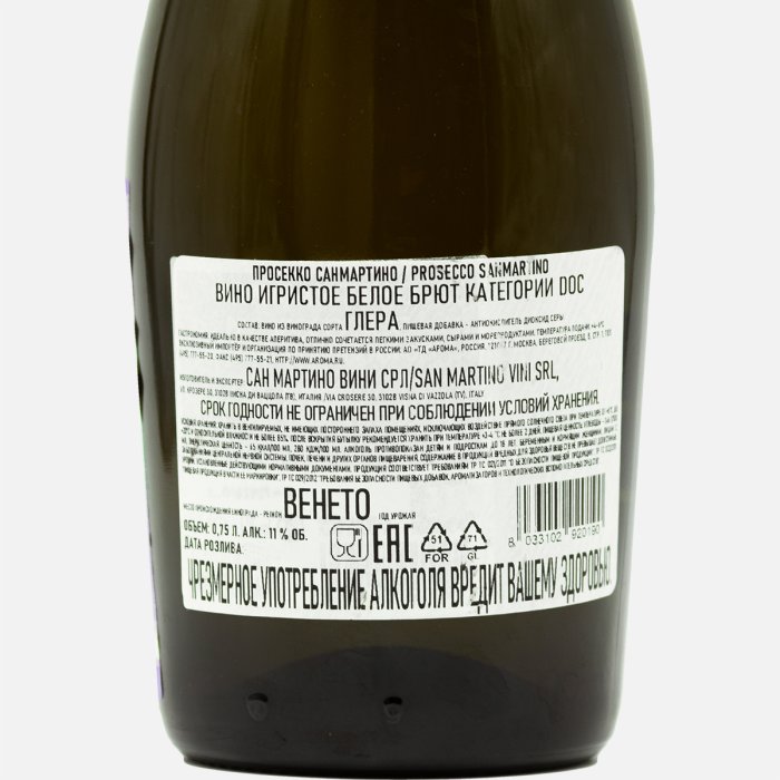 Вино игристое Сан Мартино Просекко ДОК бел брют 11% ст/б 0,75л