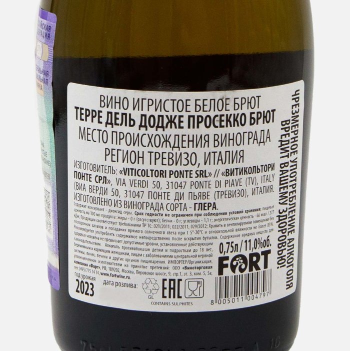 Вино игристое Терре дель Додже Просекко Брют бел 11% ст/б 0,75л
