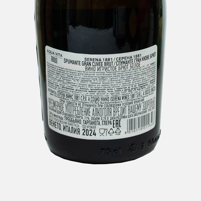 Вино игристСерена 1881 СпумантеГран Кюве Брют бел боют 10-11%ст/б 0,75л