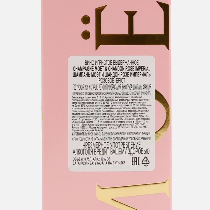 Вино игрШампань Моэт и Шандон Розе Империаль роз брют12-12.5% п/у0,75л
