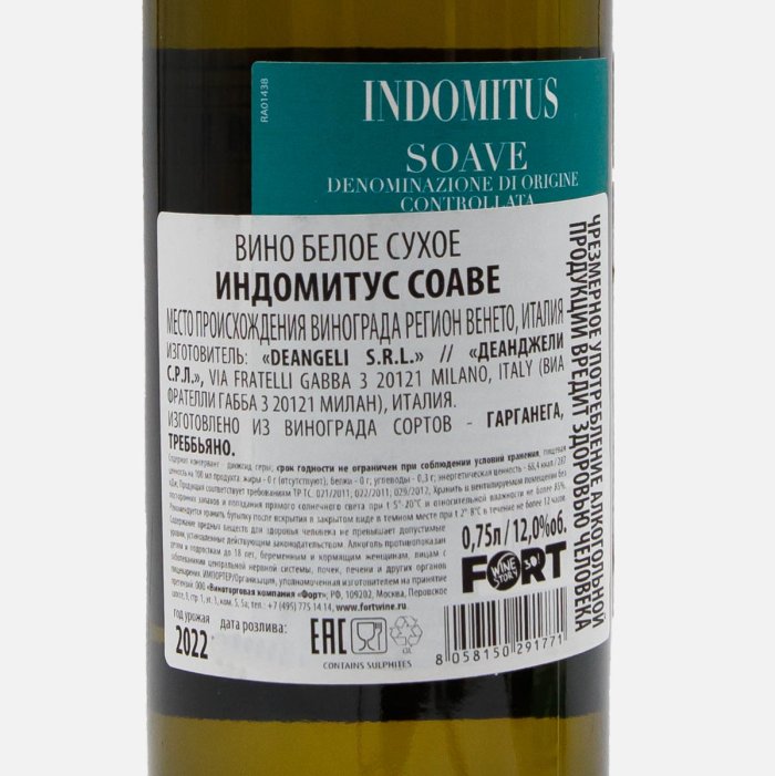 Вино Индомитус Соав бел сух 12% ст/б 0,75л