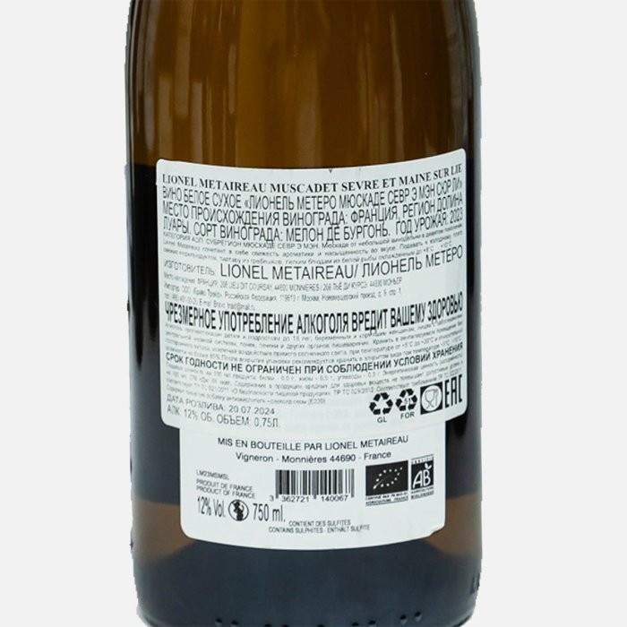 Вино Лионель Метеро Мюскаде Севр э Мэн сюр ли бел сух 11.5-12% ст/б
