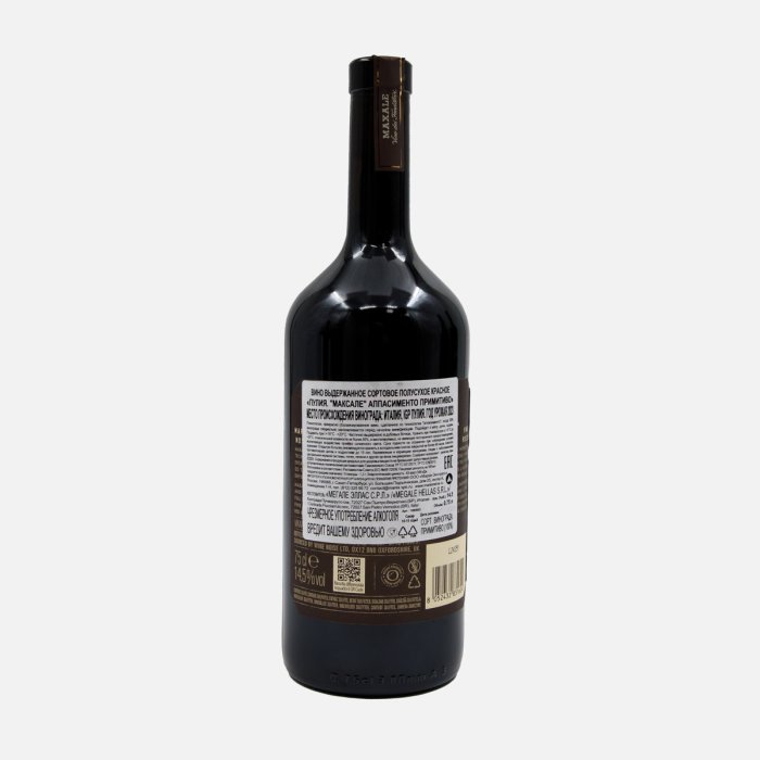 Вино Максале Аппасименто Примитиво Пулия выд сорт кр п/сух 14.5% 0,75л