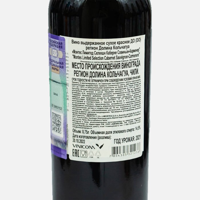 Вино Монтес Лимитед Селекшн Каберне Совиньон-Карменер выд кр сух 0,75л
