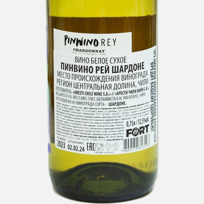 Вино Пинвино Рей Шардоне бел сух 12-12.5% ст/б 0,75л