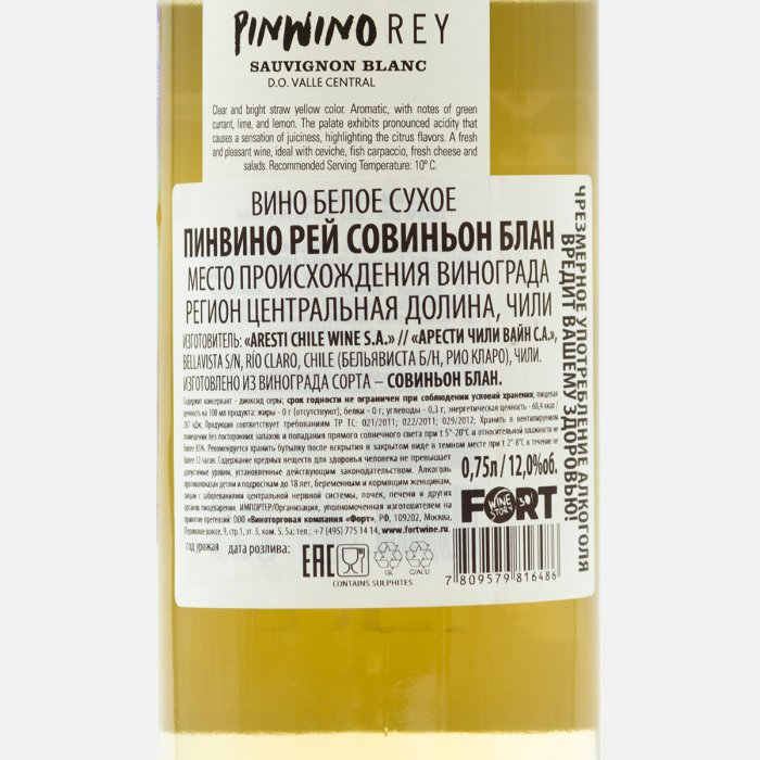 Вино Пинвино Рей Совиньон Блан бел сух 12-12.5% ст/б 0,75л