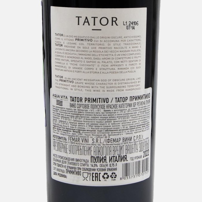 Вино Поджио Ле Волпи ТаторПримитиво ИГП сорт кр п/сух 14.5% 0,75л