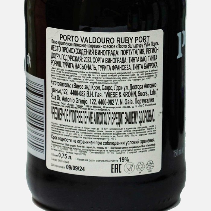 Вино Порто Вальдоуру Руби Порт Портвейн креп ликер кр19.5%с/б0,75л