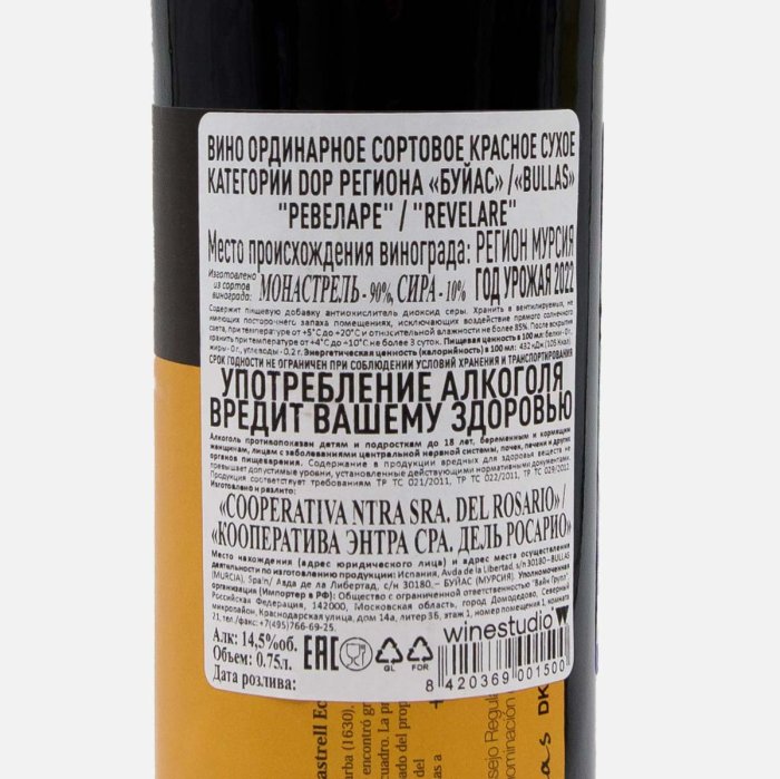 Вино Ревеларе ДОП кр сух 7.5-14.5% ст/б 0,75л