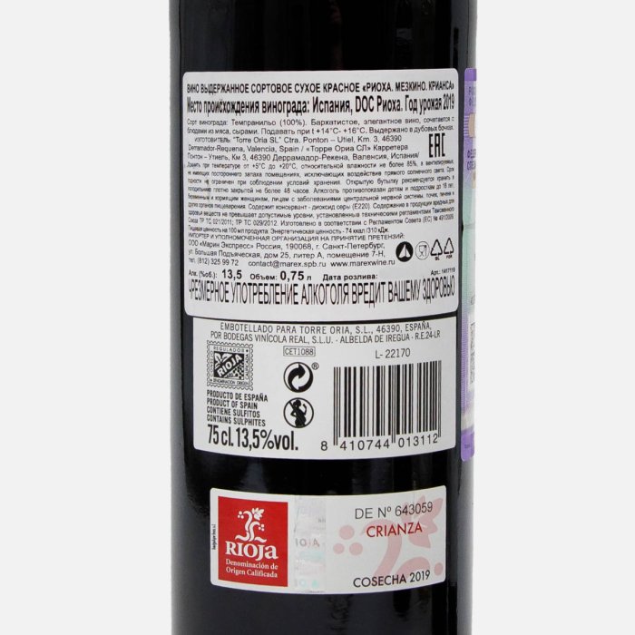 Вино Риоха Мезкино Крианса выд сорт кр сух 7.5-13.5% ст/б 0,75л