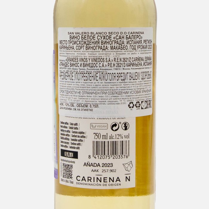 Вино Сан Балеро бел сух 7.5-12% ст/б 0,75л