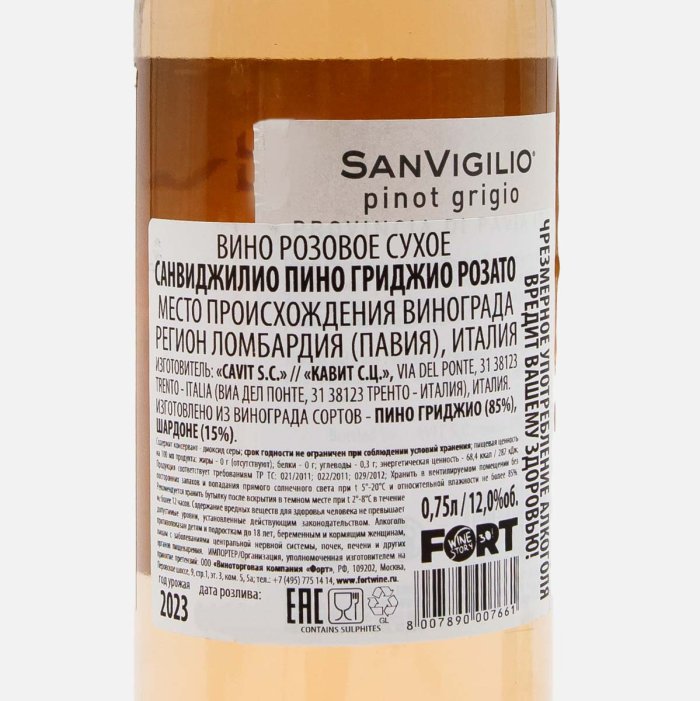 Вино СанВиджилио Пино Гриджио Розато роз сух 12% ст/б 0,75л