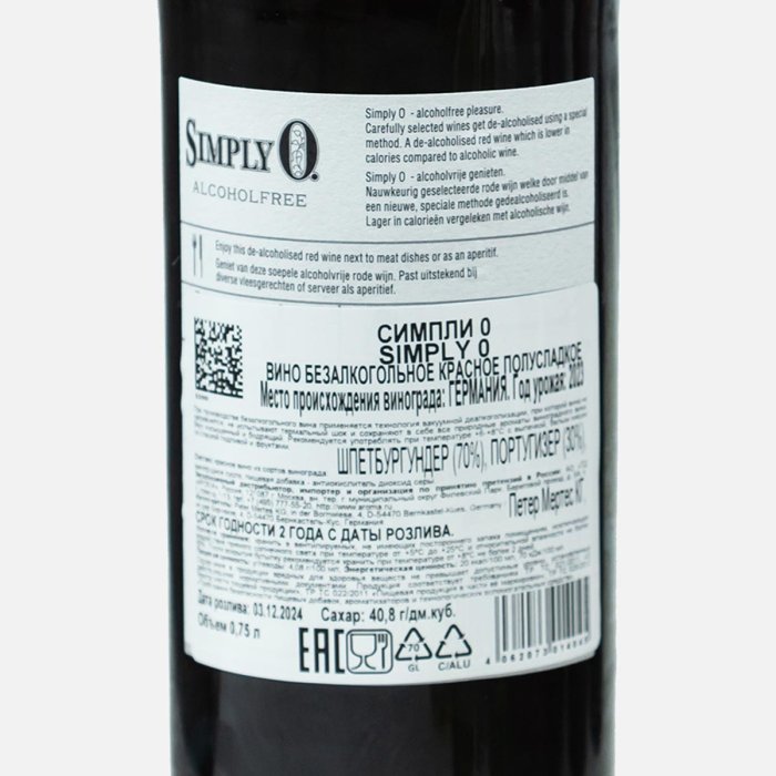 Вино Симпли 0 б/алк кр п/сл ст/б 0,75л