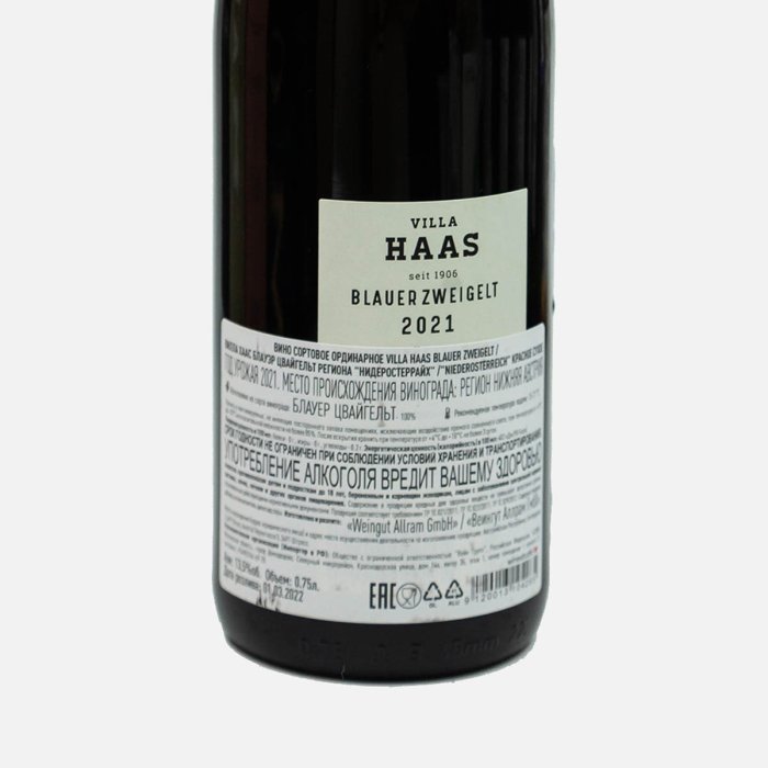 Вино Вилла Хаас Блауэр Цвайгельт сорт орд кр сух 7.5-13.5% ст/б 0,75