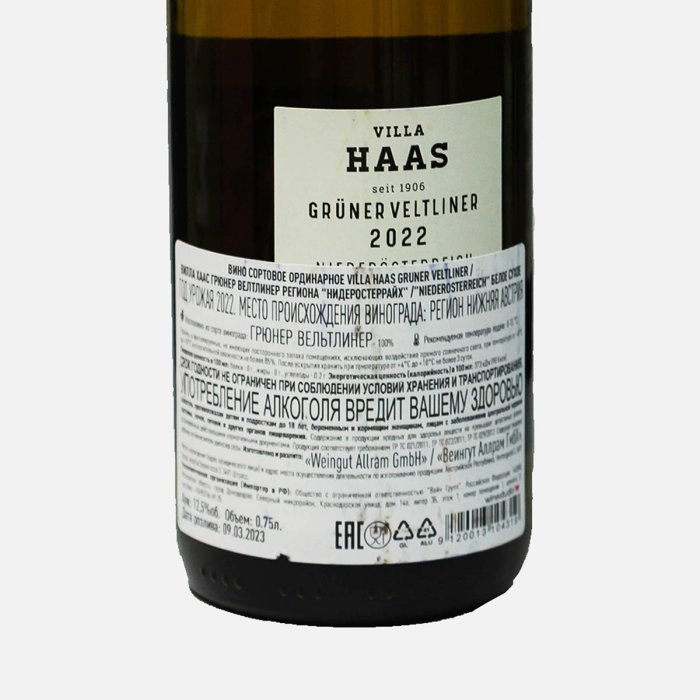Вино Вилла Хаас Грюнер Велтлинер сорт орд бел сух7.5-13.5%ст/б 0,75л