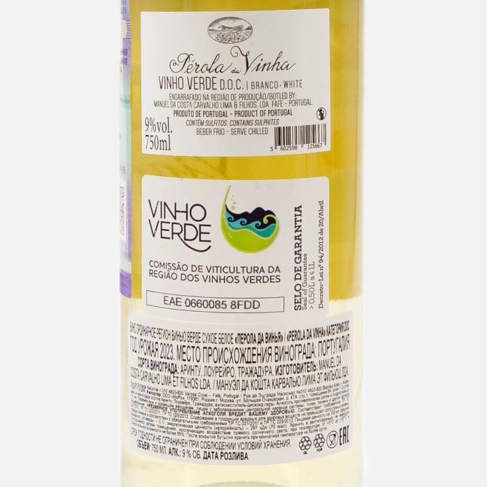 Вино Виньо Верде Перола да Винья бел сух 7.5-9% ст/б 0,75л