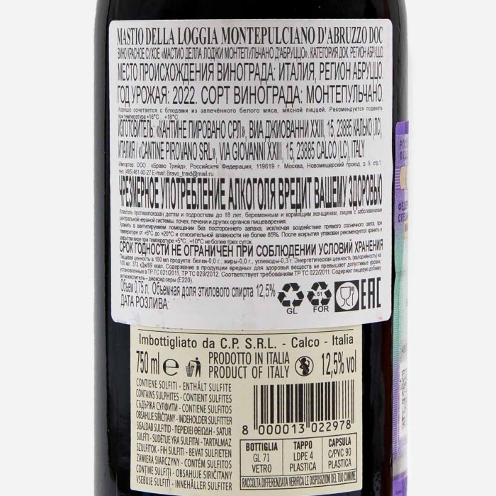 ВиноМастио деллаЛоджиМонтепульчано д'АбруццоДОК кр сух7.5-12.5%с/б0,75