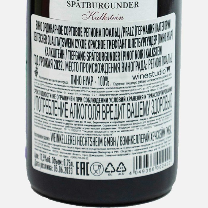 ВиноТиефганг ШпетбургундерПиноНуар Калкштейн орд сорт кр сух12-13%0,75