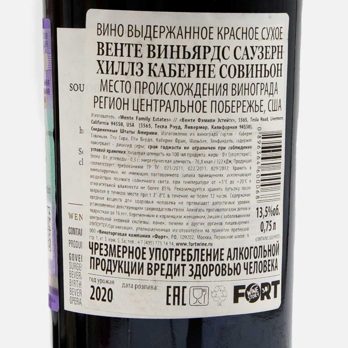 ВиноВентеВиньярдсСаузернХиллзКаберн Совиньон выд кр сух 13.5% ст/б0,75л